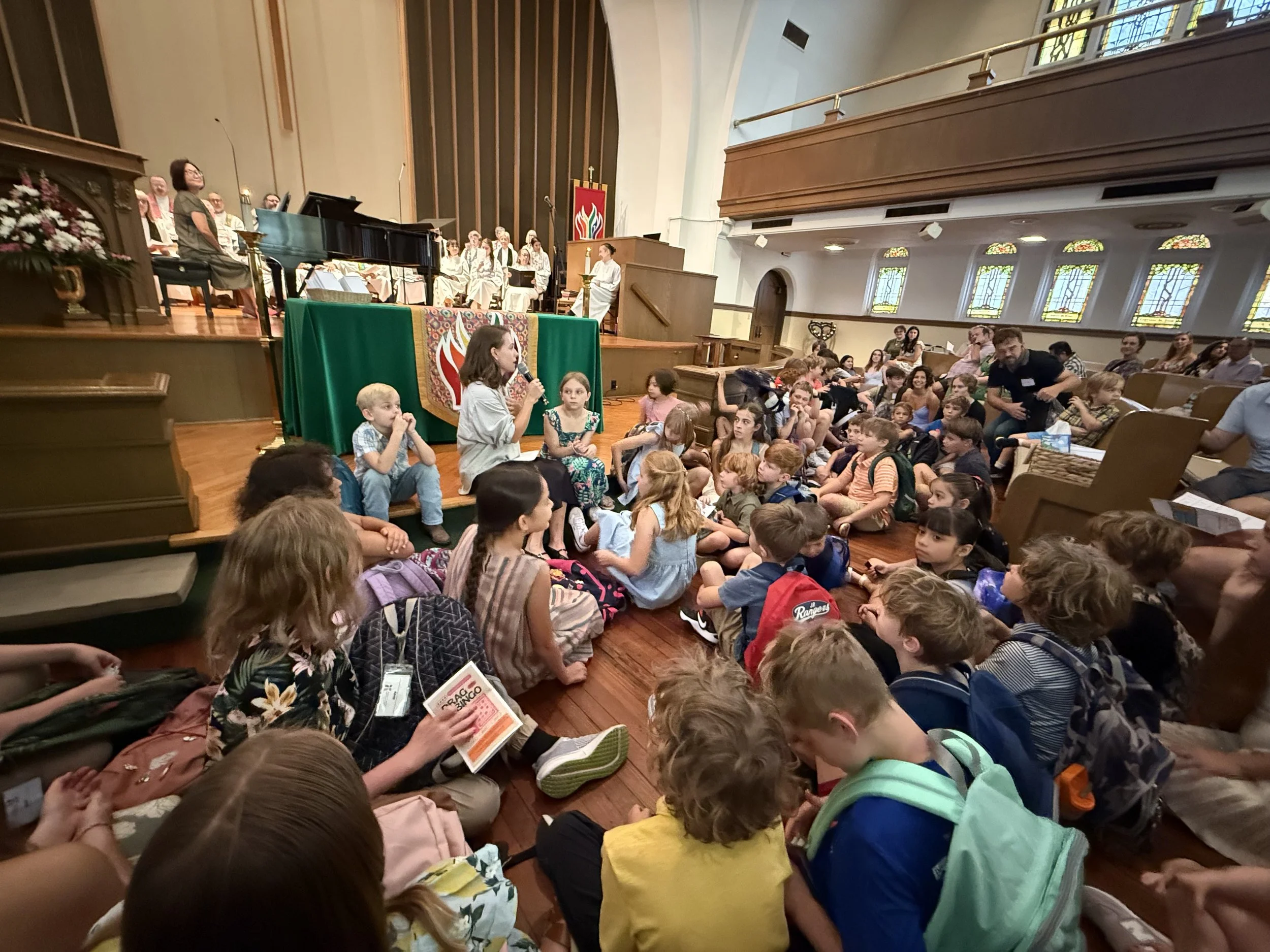 We want to create a loving, welcoming, inclusive environment for all children to grow in their faith and community. We celebrate all kinds of learning through play, music and storytelling. We believe in teaching our kids how to be in community, so we are committed to providing time and space where kids can have fun, serve, and learn with each other.
